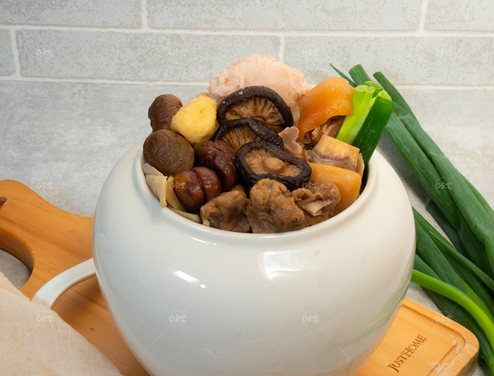熱銷傳統菜餚 - 滿漢佛跳牆,選用排骨酥、豬腳、芋頭及香菇等多種上等食材,多道工序細緻烹調,使湯頭甘醇濃郁、食材入味,絕對是聚餐美食的極佳選擇!