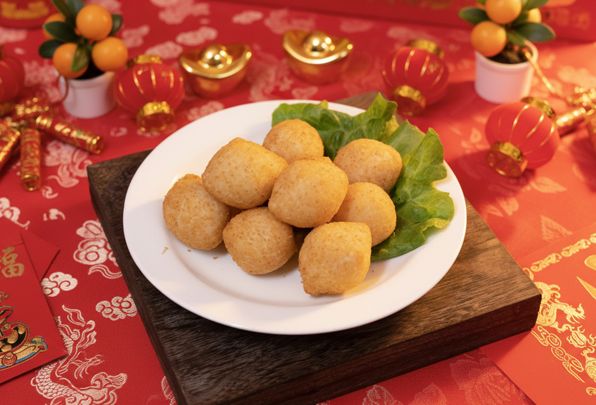 純糯米研磨外皮粿上椰子粉,私廚秘製叉燒味內餡,大人小孩都喜愛的人氣炸物小點,過年圍爐聚餐的好選擇!