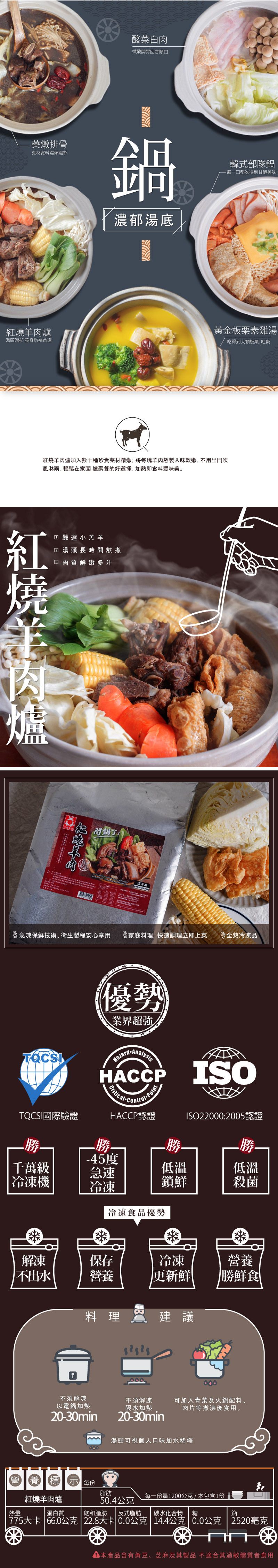 【成分】水、羊肉、豆辦醬(含基改)、麻油,沙拉油、蓋、 調味劑(L-麩酸鈉、胺基乙酸、 檸檬酸鈉、5'-次黃 嘌呤核苷磷酸二鈉、5'-烏嘌呤核苷磷酸二鈉、琥 珀酸二鈉)蔥酥、桂枝、肉桂、當歸、食鹽、豬骨 油出物、酵母抽出物、豬油、胡椒