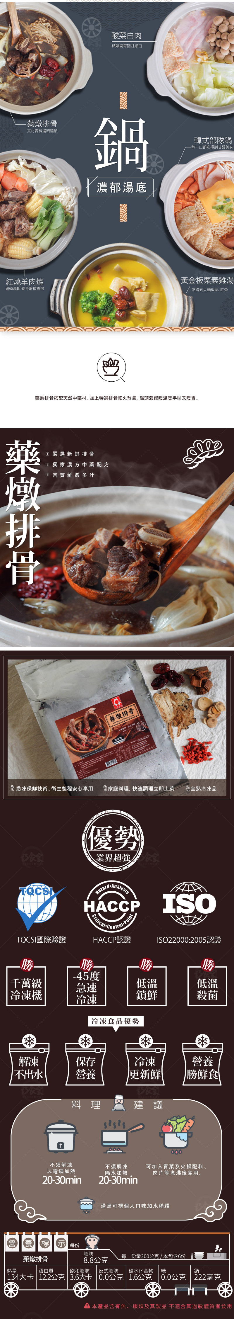 天然草本漢方,特選藥材與排骨燉煮,真材實料湯頭濃郁,慢火細心熬煮,每一口都吃得到甘醇美味。