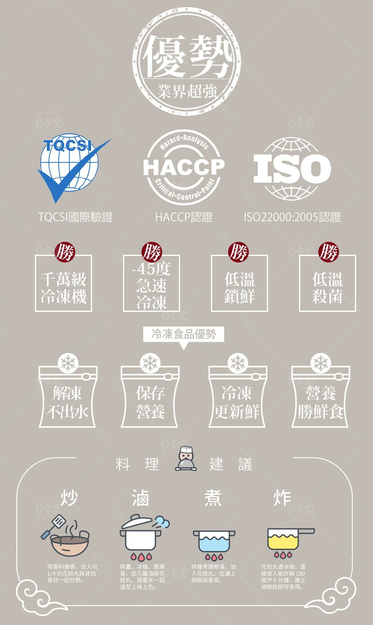 本品冷凍前已加熱;解凍後可油炸、煮湯、炭烤、微波加熱皆宜